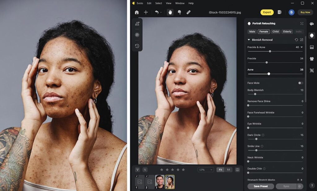 - Przykład: Możesz wygładzić skórę modelki, zmienić kolor tła lub dodać efekt vintage w kilka sekund.